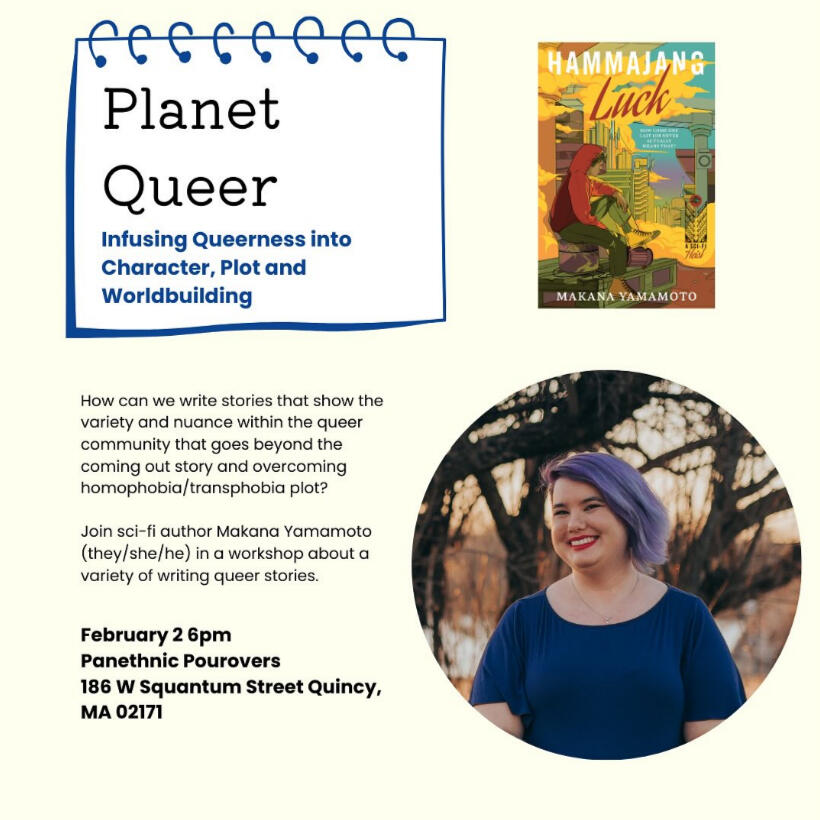 Makana will be leading the workshop Planet Queer about infusing queerness into stories through plot, worldbuilding, and character at Panethnic Pourovers on February 5th at 6pm.