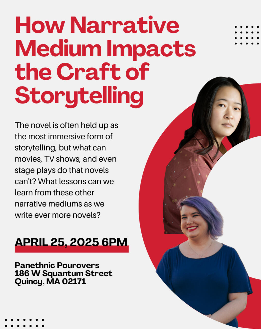 Makana will be in conversation with Tara Tai about narrative mediums (movies, video games, TTRPGs) and storytelling at Panethnic Pourovers on April 25th!