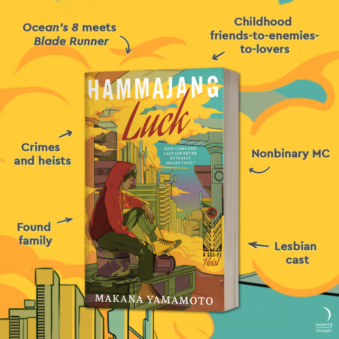 Hammajang Luck is a 2025 Locus Award Finalist for Best First Novel!Hammajang Luck is a 2025 Goodreads Choice Awards Nominee!"Yamamoto draws on their Hawaiian background while giving Ocean’s 8 a space opera twist in their entertaining debut... This is a blast.” - Publisher's Weekly"Like an Ocean’s movie set in space, Hammajang Luck will charm readers looking for a smooth ride with a lovable cast." - Book Page"Hammajang Luck has more to say than Ocean’s 8, the setting is more thoughtful and relevant than Blade Runner, and you still get the heist you came looking for! Seriously. What more could you ask for?" - Lightspeed Magazine“Hammajang Luck features all the best SF has to offer…between the lovable, queer cast of characters, the Hawaiian representation, and the action-packed heist, Yamamoto will leave readers excited for their next book.” - Starred Review from Booklist“Makana Yamamoto’s debut... is a splendid addition to the genre. With queer and trans characters, an is-this-a-romance, excellent team banter, and an exasperated sibling for Edie, all on top of a daring and audacious heist, there is an enormous amount to love...” - Locus Magazine"It possesses all the sterling attributes of the classic heist narrative, and adds in romance elements, plus the topic of familial bonds. The resulting blend is wholly organic and effective." - Locus Magazine 2024 Retrospective"...Yamamoto makes great use of each word, saying so much with a modest selection of words... Hammajang Luck is a master class on the “tempo” of writing compelling scenes." - Soapberry Review