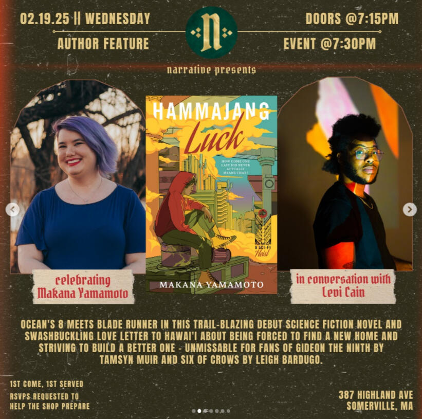 Makana will be celebrating the launch of Hammajang Luck at Brookline Booksmith on January 14th, 2025!